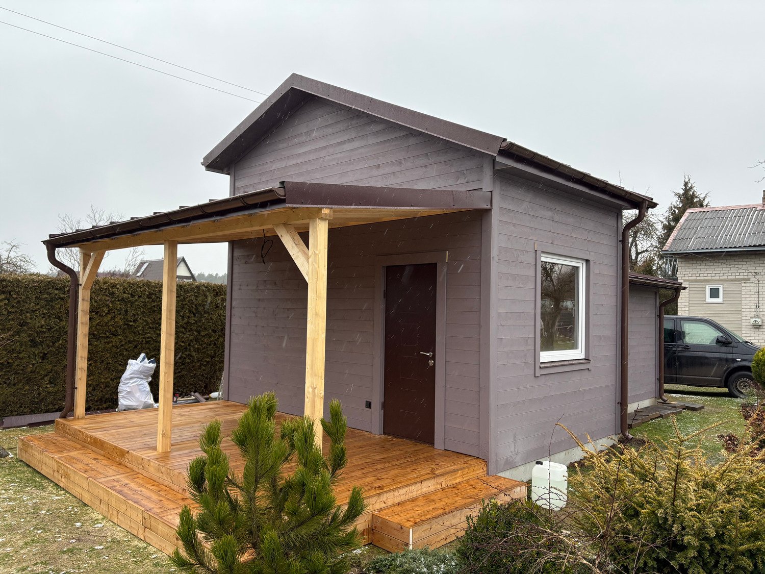 Vieno aukšto karkasinis namas su antresole. Bendras namo plotas su antresole siekia 62 m²